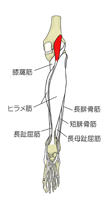 【 起 始 】 : 外側上顆(大腿骨)、膝関節包(特に弓状膝窩靭帯から)