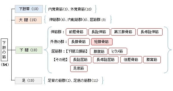 「短腓骨筋は腓骨遠位1/2と両方の筋間中隔から起こり、長腓骨筋とともに外果のうしろを通って第5中足骨粗面に付着する。長深伸筋群の系統発生上の名残は下等哺乳類によく発達しており、弱い停止腱が第5趾の足背筋膜へ伸びている。」