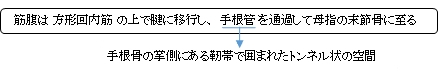 ・ 神 経 : 正中神経の枝の前(前腕)骨間神経 (C6, C7) ※ 資料によってはC8を含む。
