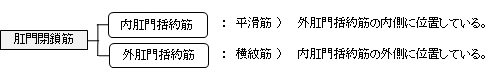 ・ もう一つの肛門括約筋である内肛門括約筋は不随意性の平滑筋よりなる。
