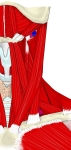 両頭は合して強大な筋腹を構成し、後上方に走る。