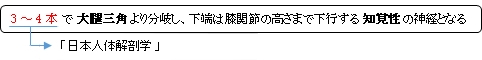 「 前皮枝は、大腿三角に起こる。鼡径靱帯より8~10cm遠位で、この神経のすべての枝は大腿筋膜を貫き、膝関節の高さまで下行する。走行の間に、大腿前面および内側面を覆う皮膚と筋膜に枝を送る。」