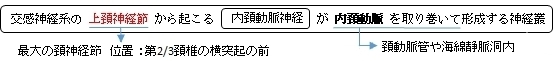 Postganglionic sympathetic fibres ascend from the superior cervical ganglion, along the walls of the internal carotid artery, to enter the internal carotid plexus. These fibres then distribute to deep structures, which include the Superior Tarsal Muscle and pupillary dilator muscles.[1] Some of the fibres from the internal carotid plexus converge to form the deep petrosal nerve.[2]