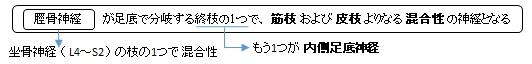 ・上記では「足底で」と記したが「船戸和弥のホームページ 」では「 屈筋支帯の下で脛骨神経より起こり 」という解説が見られる。また、インターネットで画像検索をすると、足底を描いたスラストなどでは、明らかに足底で脛骨神経が内側足底神経と外側足底神経に分岐しているものを掲載しているサイトもあれば、足底部ではすでに2つに分岐しているイラストを掲載しているサイトも見受けられる。