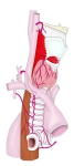 ■ 腹 部:abdominal part ■ ・腹腔に入って少し左方(ときに上方)に曲がり、第11胸椎の前左側で胃の噴門に達する。 ・3部のうちで最も短い。